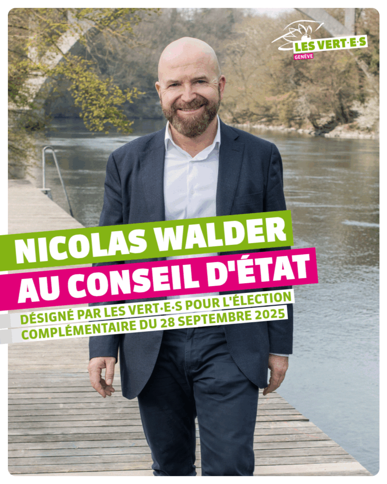Genève, le 11 juin 2025 – L’Assemblée générale extraordinaire des Vert-e-s genevois-es, réunie ce mercredi 11 juin à la Maison internationale des associations, a désigné à l’unanimité Nicolas Walder comme candidat à l’élection complémentaire au Conseil d’État. Figure expérimentée et respectée, Nicolas Walder incarne une candidature rassembleuse capable d’unir les forces progressistes pour défendre une vision écologique, solidaire et inclusive du canton.